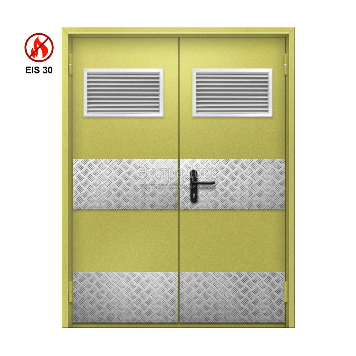 Двухстворчатая огнеупорная дверь EI 30 ДГ-02-EI30 ДП83 двупольная глухая с решеткой в Клине