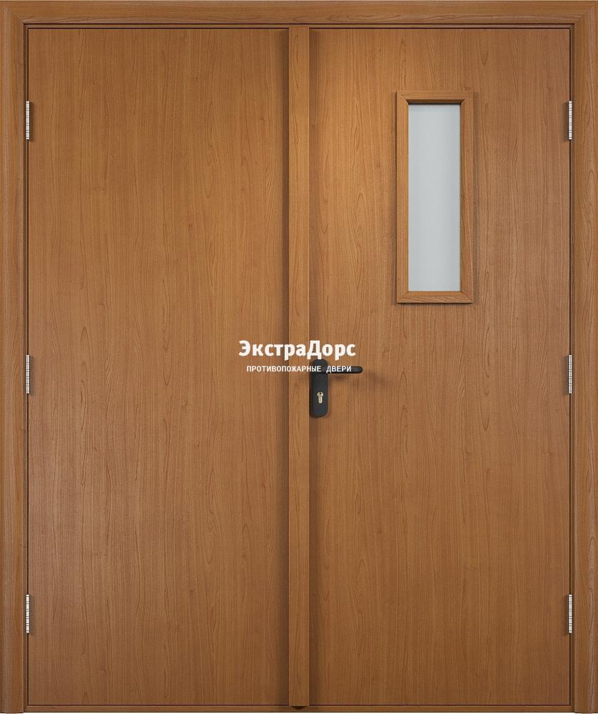 Двупольная противопожарная дверь ДМП-01-30 двухстворчатая со стеклом дуб в Клине