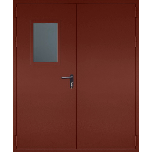 Распашная дверь огнеупорная двупольная с окном порошковая
