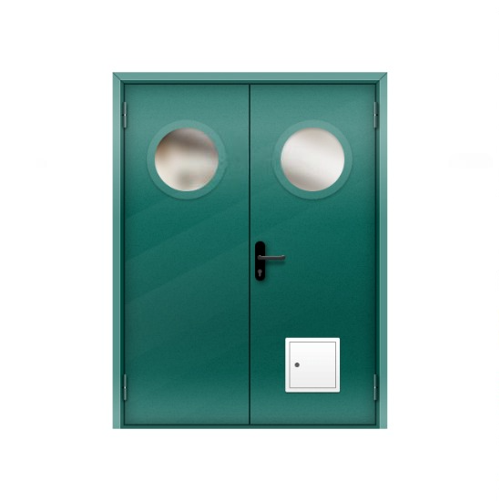 Дверь противопожарная со стыковочным узлом двупольная остекленная – надежное решение для защиты вашего объекта от пожара. Эта противопожарная дверь сертифицирована по классу огнестойкости ei90, что гарантирует эффективную защиту от распространения огня и дыма в течение времени эвакуации. Прочная двупольная конструкция в сочетании с полотном толщиной 60 мм и стальным листом 1,5 мм (2 шт.) создает непреодолимый барьер для огня. Дверное полотно установлено в надежную коробку, а специальный уплотнитель предотвращает проникновение дыма. Размер 200х160 см подходит для большинства проемов. При необходимости мы можем выполнить дверь в любом другом размере под ваш запрос. Стильная отделка и зелёный мох (ral-6005) цвет делают дверь эстетически привлекательной. Эта противопожарная дверь – идеальное решение для любого помещения. Дверь противопожарная со стыковочным узлом двупольная остекленная - это не просто дверь, это – гарантия безопасности, подтвержденная всеми необходимыми сертификатами. Сделайте правильный выбор в пользу безопасности! Наши специалисты помогут подобрать оптимальную комплектацию и организуют доставку с последующим монтажом в удобное для вас время.