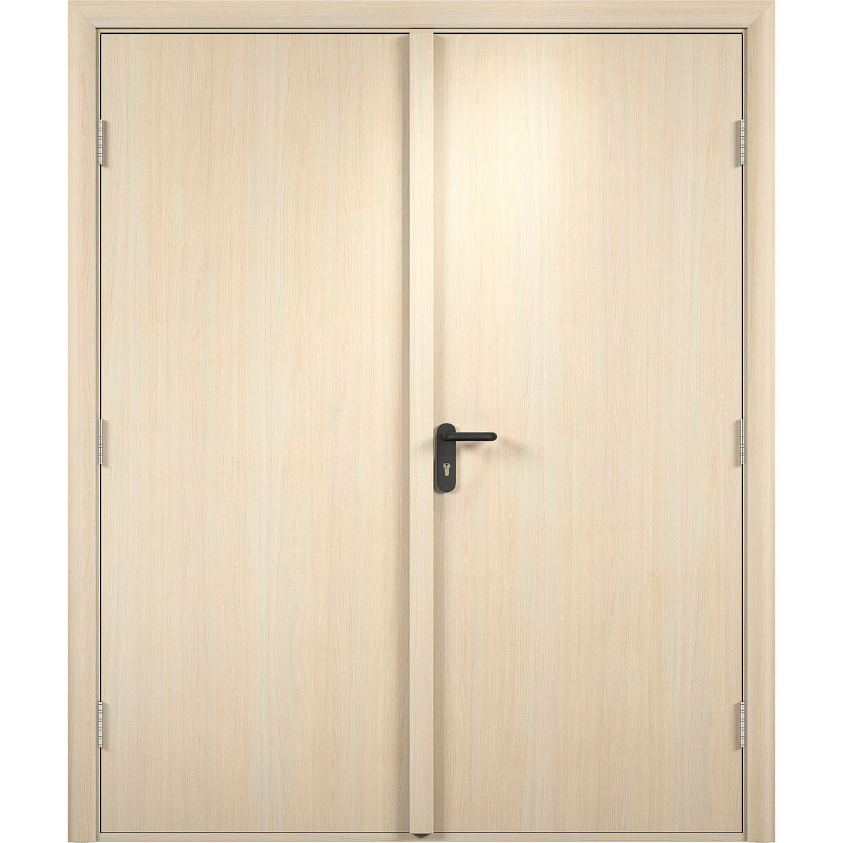 Двухстворчатая огнестойкая дверь EI 30 ДГ-02-EI-30 двупольная глухая входная с МДФ и резьбой