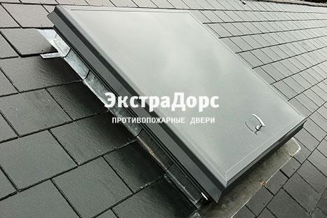 Черный противопожарный люк на кровлю с прозрачной крышкой