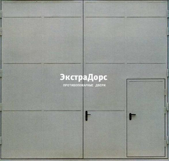 Подъемные противопожарные ворота с окнами и поворотной калиткой