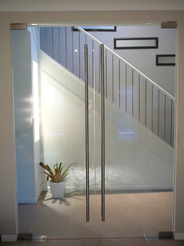 Противопожарная безрамная дверь со стеклом в частный дом в Клине